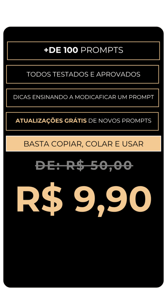 O valor normal dos nossos prompts é R$ 50,00, mas decidimos fazer essa promoção de R$ 19,90 e você pode aproveitar.